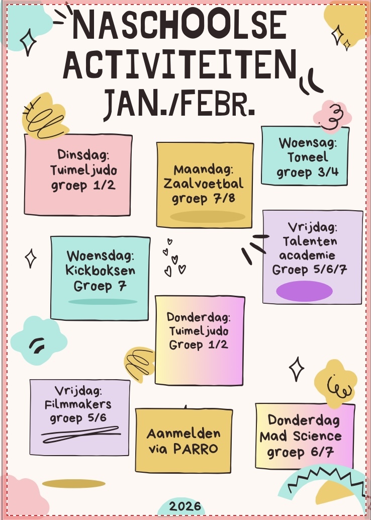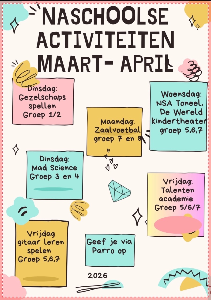 Van vakantie tot vakantie hebben wij een wisseled naschoolse activiteiten aanbod. Wij willen hiermee zoveel mogelijk kinderen ook na schooltijd bereiken om samen iets leuks te doen.